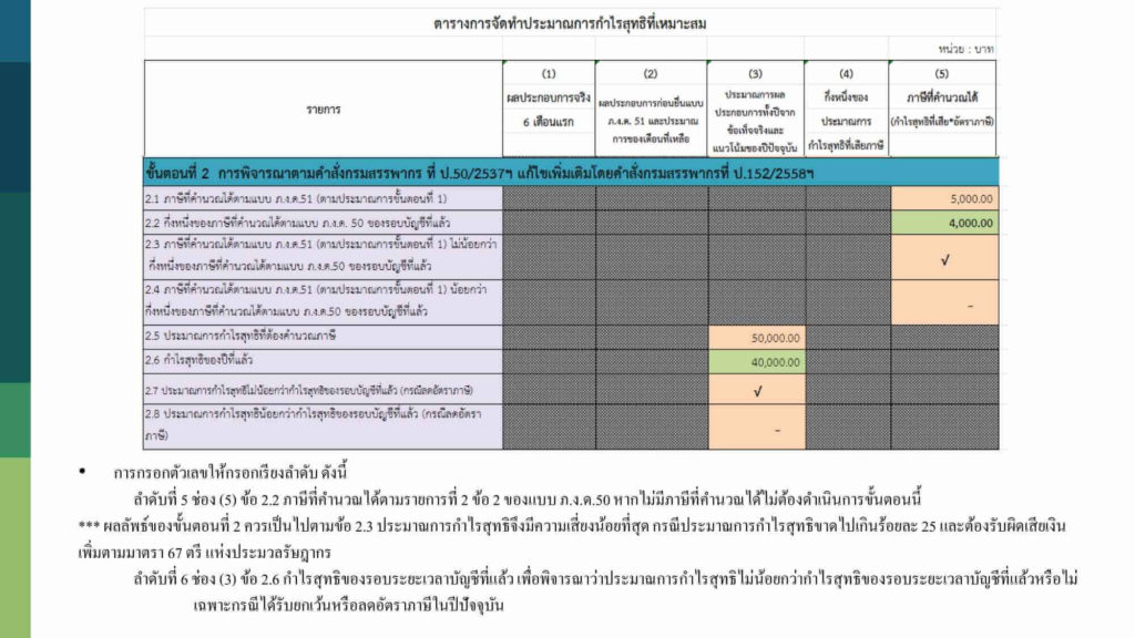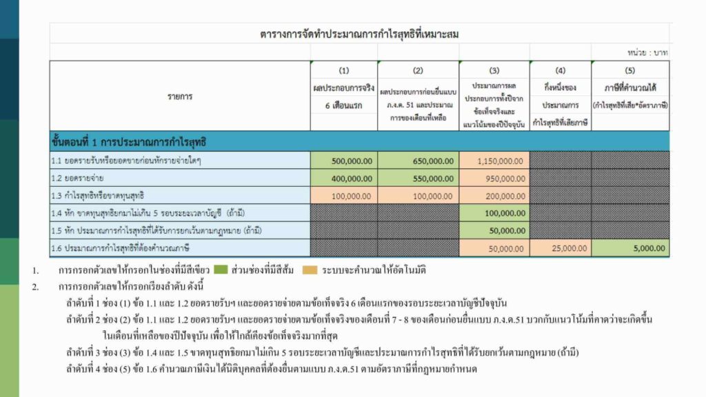 การประมาณการกำไรสุทธิตามแบบแสดงรายการ ภ.ง.ด.51 ต้องใช้กำไร (ขาดทุน) สุทธิทางภาษีอากร